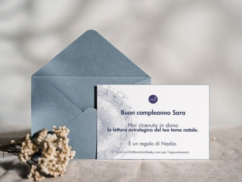 La lettura del tema natale è più di un’idea regalo personalizzata, è uno strumento di conoscenza interiore, donato a chi ami in un momento che ritieni significativo per la sua vita. Può essere il suo compleanno, la sua laurea, la crisi esistenziale che non si aspettava di attraversare, la conquista di un obiettivo importante, nel quale avete creduto insieme. In ogni caso, sarà il regalo personalizzato che non si aspetta, l’occasione per guardarsi dentro e trovare nuove fonti di luce e di forza.
